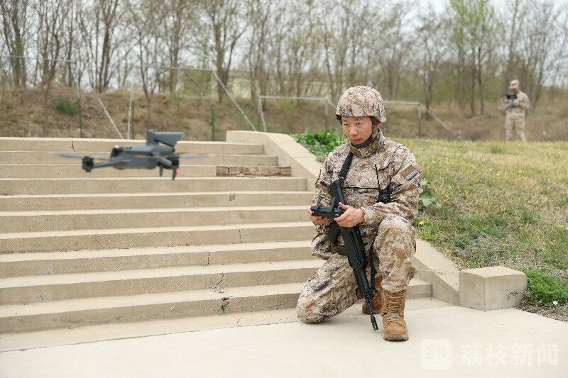 官兵在规定时间内抵达任务地域,警卫连应急分队指挥员认真研判现场态势,果断命令应急分队快速出动无人机进行抵近侦察。